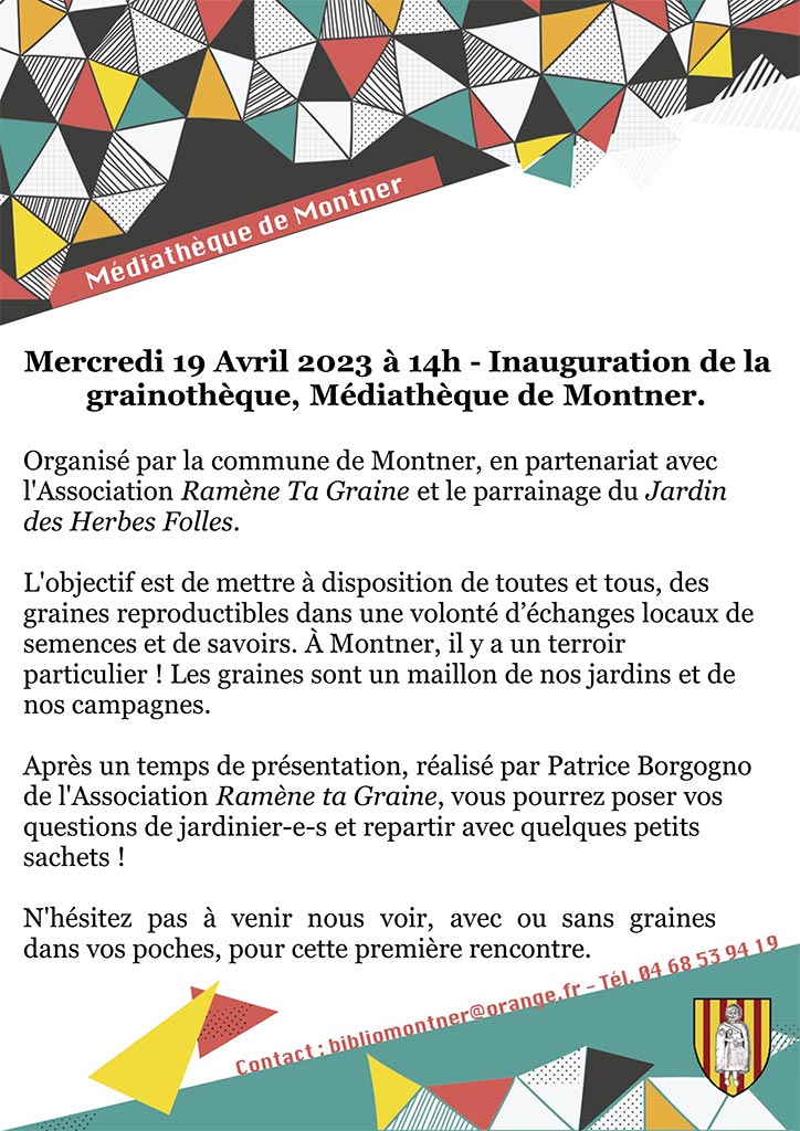 Inauguration d’une Grainothèque à Montner Mercredi 19 avril 14h !