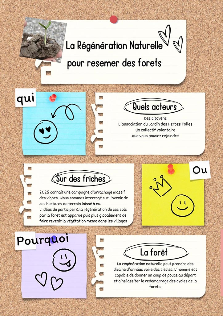 Vous trouverez plus de détails dessous, mais voici l’essentiel : nous allons semer des graines d’arbres sur de nombreux terrains, sans irrigation, et les laisser germer et s’installer naturellement. Cette méthode, appelée Régénération Naturelle Assistée (RNA), a déjà reçu le soutien d’adhérents propriétaires privés et nous avançons sur des collaborations avec des municipalités pour végétaliser des friches.